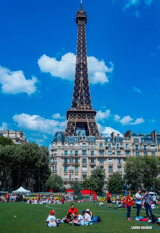 Les animations battent encore leur plein, danses, musiques, jeux, défis se succèdent sur le terrain du stade Emile Lhantoine au pied de la majestueuse Tour Eiffel alors que le soleil inonde la place.