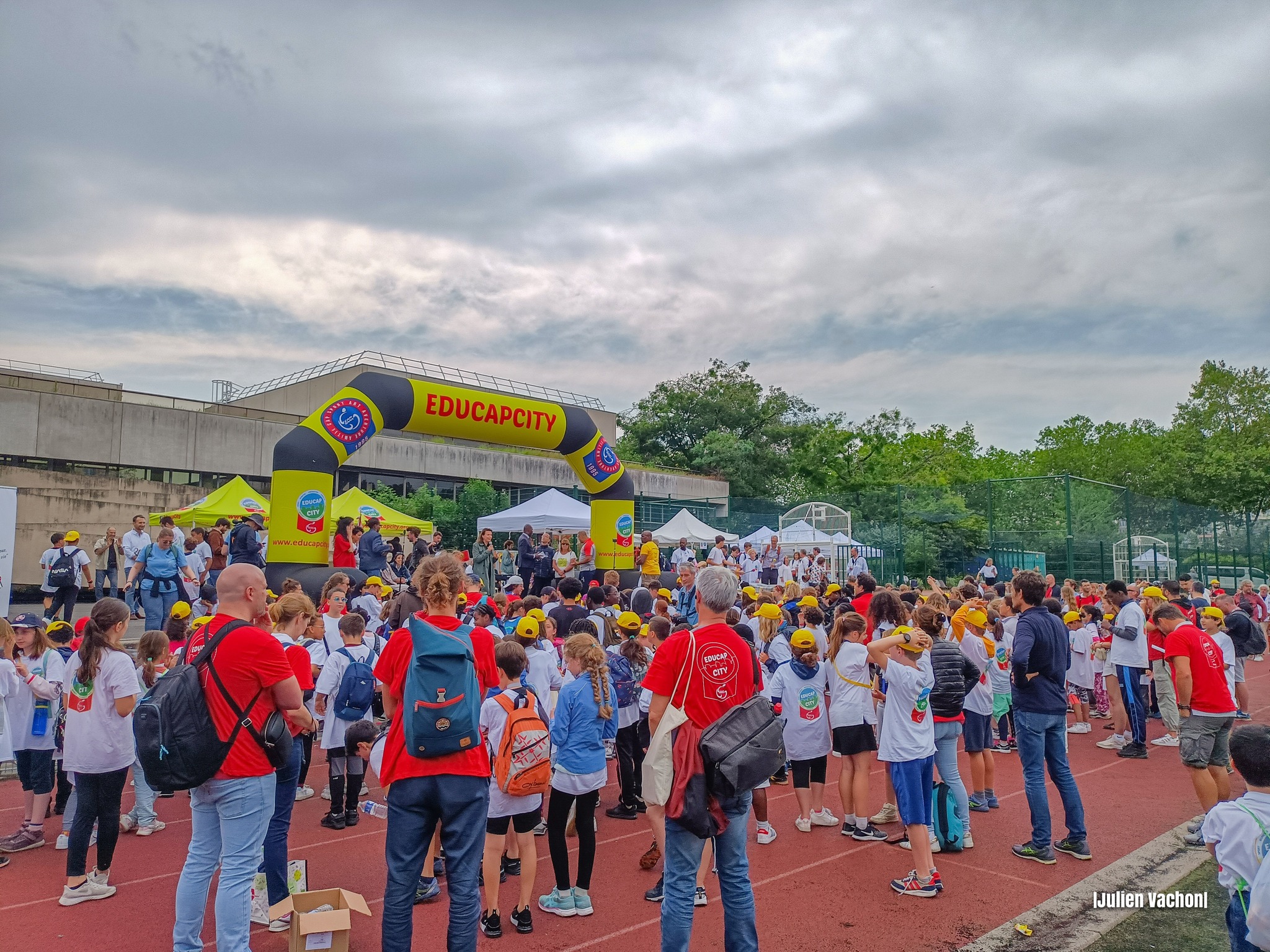 À la fin des épreuves, nous sommes allés en groupe au pied de la Tour Eiffel, plus de 1200 enfants venus de différentes régions de France. Cette fin d’après midi marquait la fin du Rallye. Toutes les équipes sont retournées au Village où le jury a délibéré pour élire les équipes gagnantes d’Educapcity et Educapcity Rallye, avec trois écoles lauréates par catégorie. Les animations, notamment des danses, de la musique, des jeux et des défis, ont continué à animer le stade Emile Anthoine au pied de la Tour Eiffel, dans une ambiance festive malgré la pluie persistante.