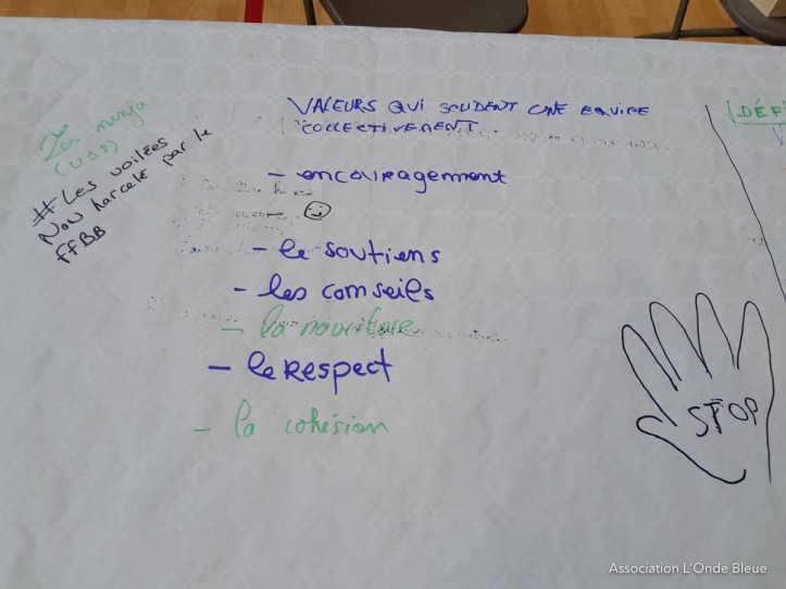 passes – Se connaître – Ne pas se moquer de la différence des autres – S’encourager – Le respect – Le conseil – La cohésion – Les voilées non harcelées par la FFBB
